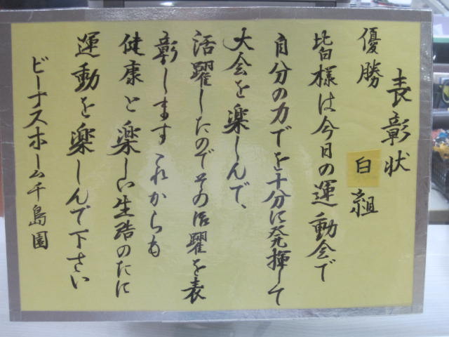 又、表彰状は、ショートスティの利用者様が書いて下さいました。